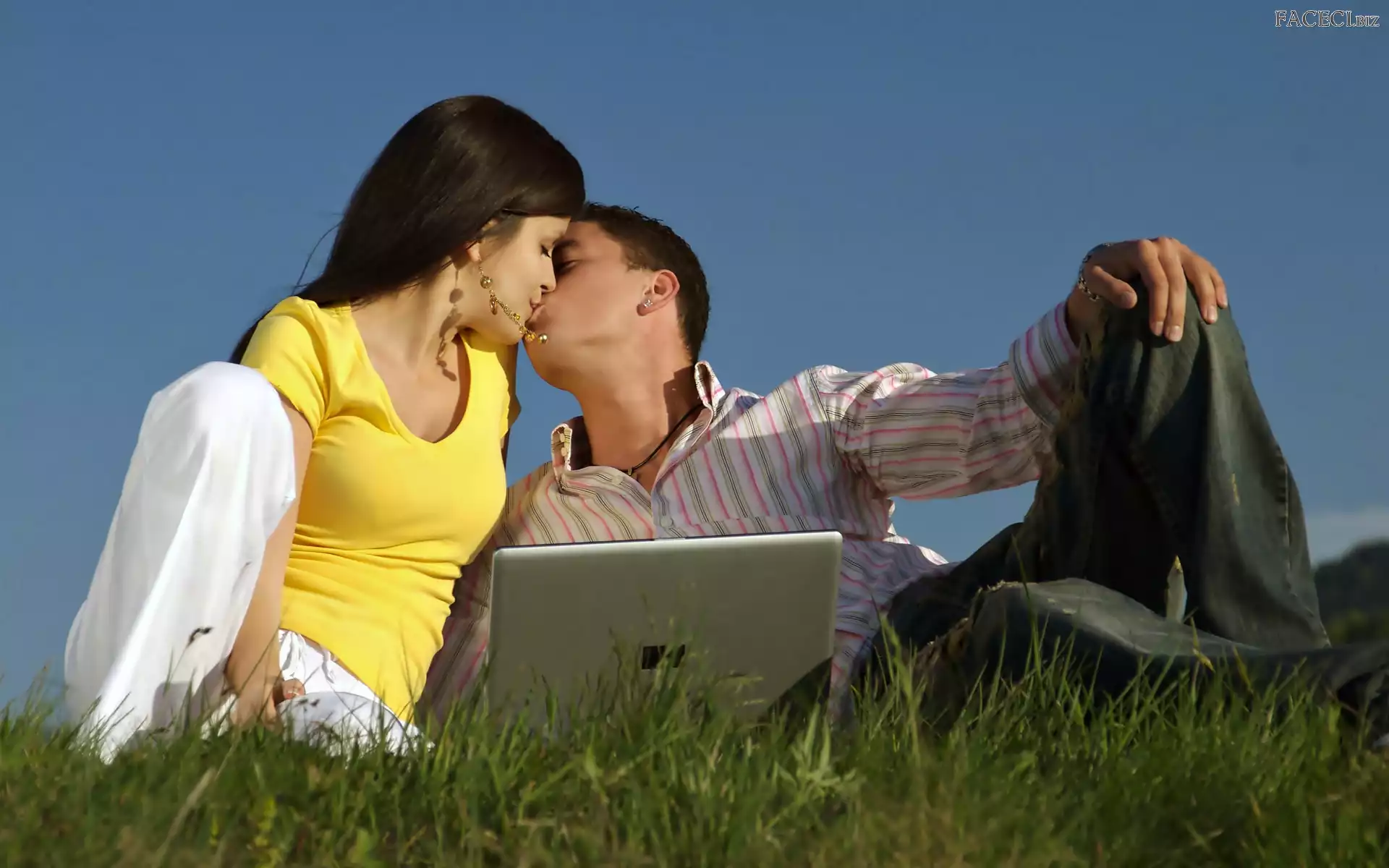 Chłopak, Laptop, Dziewczyna, Pocałunek - faceci.biz